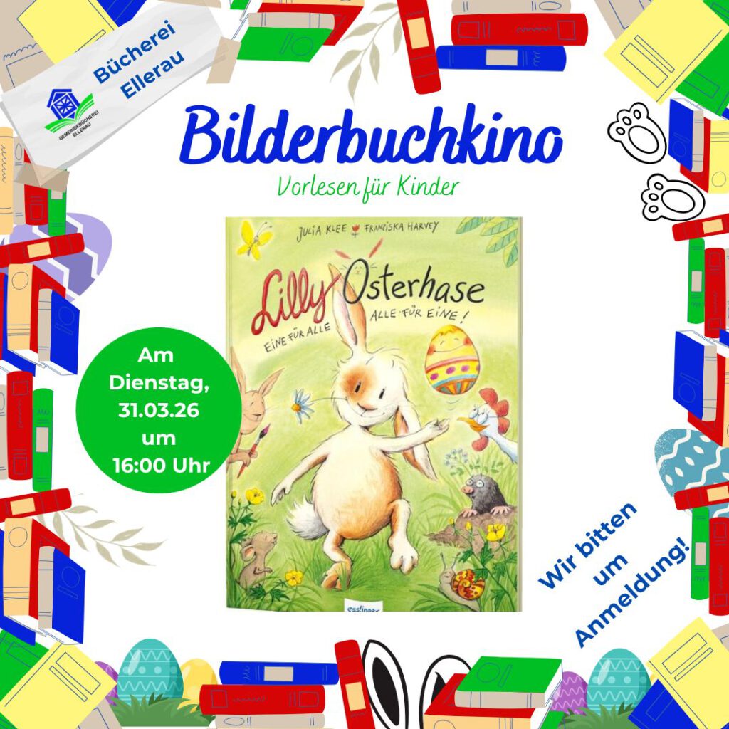 Veranstaltungen Ostersamstag Kamishibai im März Lesetipps am Abend Bilderbuchkino Ostern Bilderbuchkino im April Vorlesen für Grundschüler Onleihe 3